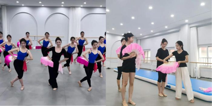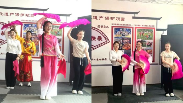 之后,實(shí)踐隊(duì)員們兵分多路開展"教學(xué)+展演"活動。在少兒藝術(shù)機(jī)構(gòu),隊(duì)員們用宋老師"過日子的故事"解讀角色:把丑角比作"調(diào)皮的小伙",妞角當(dāng)作"害羞的姑娘",擓角化作"愛操心的長輩",用《撲蝴蝶》的情節(jié)設(shè)計(jì)互動游戲。孩子們跟著模仿"開扇撲蝶"的動作,雖稚嫩卻認(rèn)真,課堂上滿是歡笑聲。鏡頭里孩子們舉著彩扇的模樣,配上"非遺里的生活智慧"的文案,在新媒體平臺收獲廣泛關(guān)注。