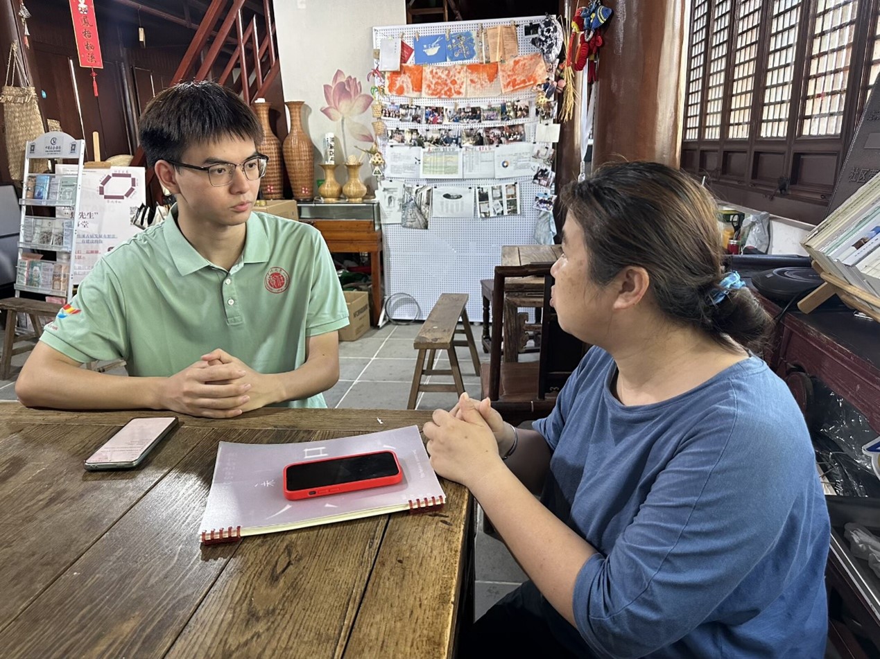 圖為實踐團隊成員采訪焦溪社區發展顧問范老師。李澤宇 供圖