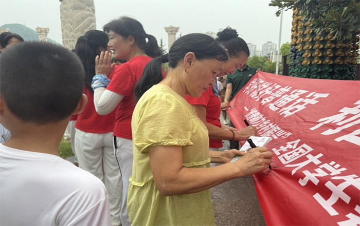 圖為當地居民參與調研后在橫幅上簽字。宋成雙 供圖