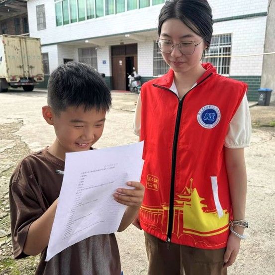隨后進入普通話教學(xué)環(huán)節(jié),團隊針對寧鄉(xiāng)方言特點,詳細解析了常見易錯字的正確發(fā)音規(guī)則,并組織了一場趣味繞口令挑戰(zhàn)賽。孩子們積極參與,現(xiàn)場氣氛熱烈而歡快。為鼓勵表現(xiàn)優(yōu)異的孩子,團隊為他們分發(fā)了小獎品。本次活動不僅以寓教于樂的方式強化了孩子們的知識吸收,還通過互動拉近了團隊與社區(qū)的距離,初步構(gòu)建起涵蓋溈濱村兒童科技認知水平、語言學(xué)習(xí)特點以及特色農(nóng)業(yè)產(chǎn)業(yè)技術(shù)需求的基礎(chǔ)數(shù)據(jù)庫。