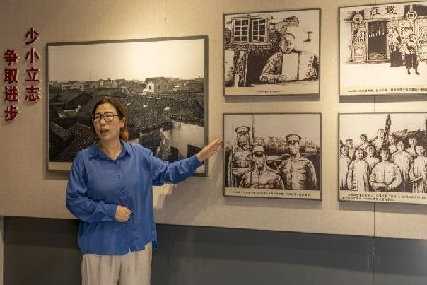 (圖為冷遹紀念館講解員在認真講解冷遹先生的生平事跡)