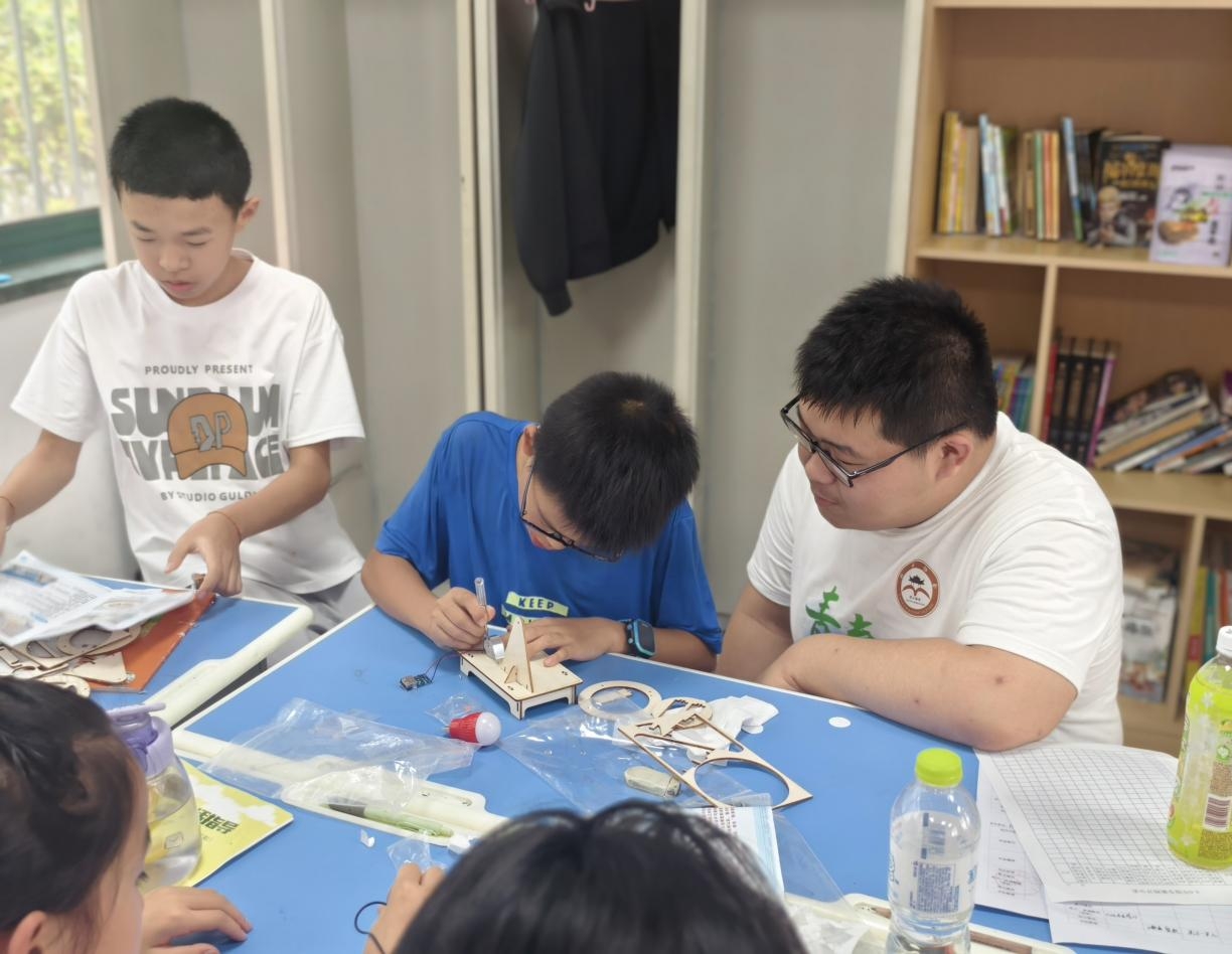 (支教隊(duì)員指導(dǎo)孩子完成小燈泡拼接 侯陽攝)