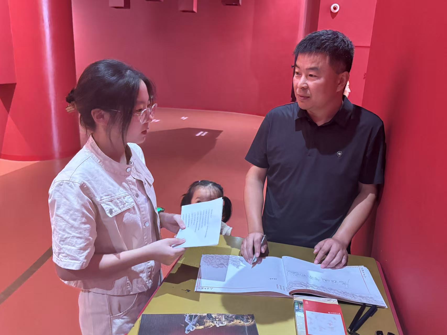 紀念館里,學習熱情涌動。在巨幅浮雕前,家長耐心引導孩子解讀“小推車推出來的勝利”;互動展品旁,年輕父母與孩子共同操作,在光影故事中傳遞紅色記憶;親歷者影像前,觀眾屏息聆聽跨越時空的戰斗故事。“不怕吃苦、不懼犧牲的信念,在新時代依然振聾發聵。”一位隊員記錄下這樣的觀察。