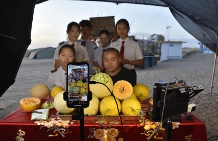 7月22日夜幕降臨,實踐隊迅速轉(zhuǎn)換身份,化身助農(nóng)主播。晚上八點十分,隊員們默契配合“仲麟哥”在抖音平臺為當(dāng)?shù)靥禺a(chǎn)金紅寶蜜瓜傾情代言。鏡頭前,青年學(xué)子熱情洋溢地講述民勤蜜瓜的甘甜,一小時內(nèi)成功售出近1000單,以實際行動架起助農(nóng)“云橋梁”,讓沙漠綠洲的甜蜜果實走向更廣闊的市場。