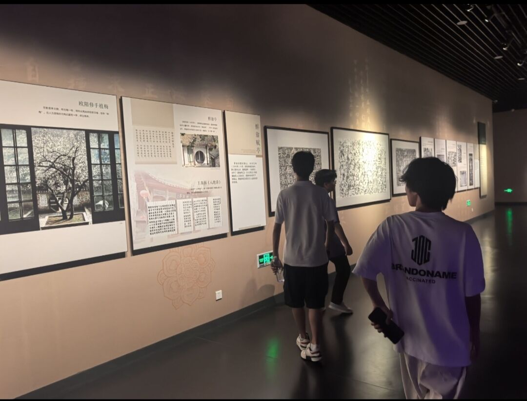 文明的回響終在建筑展區沉淀。四組精微模型矗立白臺之上:黛瓦飛檐的中式庭院環抱假山池魚,現代廊橋跨躍鏡面水域,每處窗欞雕刻、喬木栽植皆可細辨。背景墻懸掛的古建圖志與微縮模型構成雙重敘事,而一道印有"文明參觀 禁止觸摸"的紅色隔離帶,恰成為最富哲思的展品——它丈量著觀眾與文物的最佳距離,提醒我們以目光代替觸碰,在敬畏中讀懂榫卯間的智慧密碼。