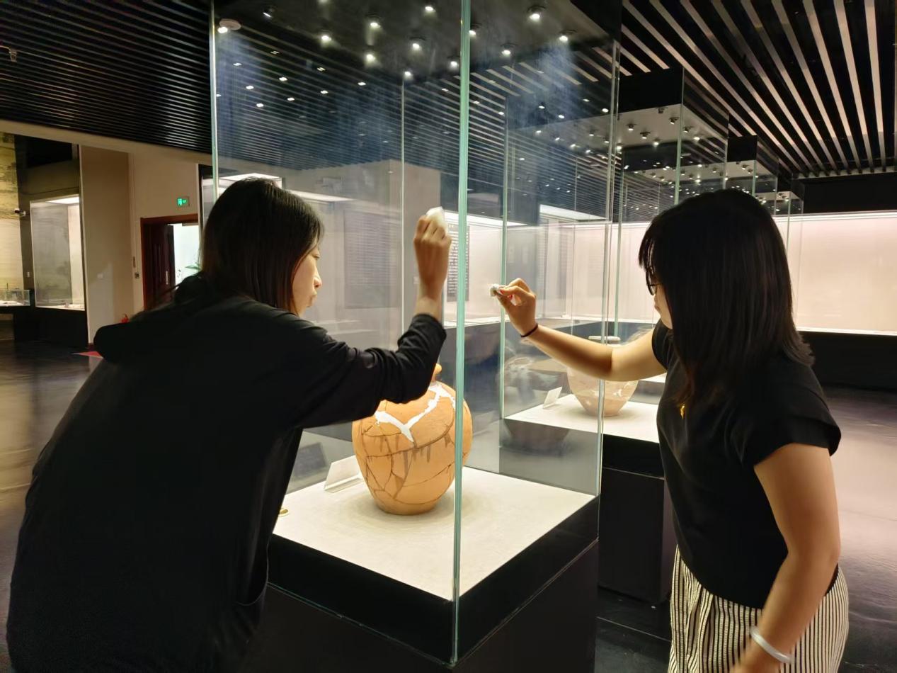 8月13日,實(shí)踐團(tuán)成員化身為“文明引導(dǎo)員”,作為志愿講解員正式上崗。成員在各展區(qū)為市民及青少年研學(xué)團(tuán)提供專(zhuān)場(chǎng)講解。通過(guò)“文物+故事”的生動(dòng)敘述,讓靜默的陶罐、銅鏡重現(xiàn)歷史場(chǎng)景,活動(dòng)意義深遠(yuǎn)。