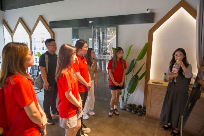 同時,實踐團隊還參觀了桃文化創客中心、錫西革命陳列室等展館,桃文化創客中心將果實轉化為多種文創產品,不斷進行產品的迭代升級,讓“桃元素”滲透產業鏈各環節。走進錫西革命陳列室,大家在歷史照片和革命文物前駐足,聆聽當地黨員講述紅色故事,理解黨建引領不僅推動產業發展,更凝聚著鄉村振興的精神力量。