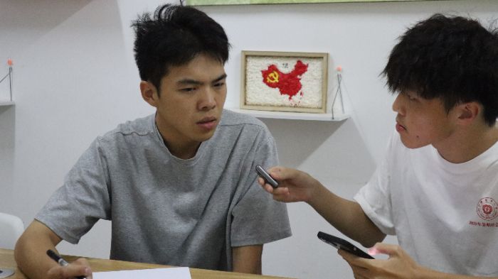 圖為太和隊隊員采訪剪紙課老師紀阿康。劉思琪 攝