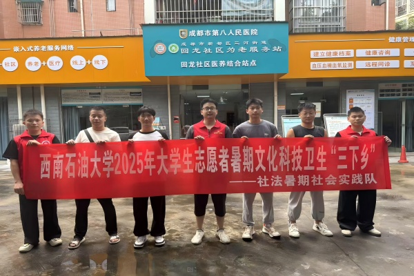 暑假期間,西南石油大學社法學院暑期社會實踐隊赴三河街道回龍社區醫養中心開展首期志愿活動。此次活動由4名社會學同學和4名法學同學組成的實踐隊,聯合社區醫生與志愿者,三方協同開展服務,積極探索“醫養結合”社區服務新模式。