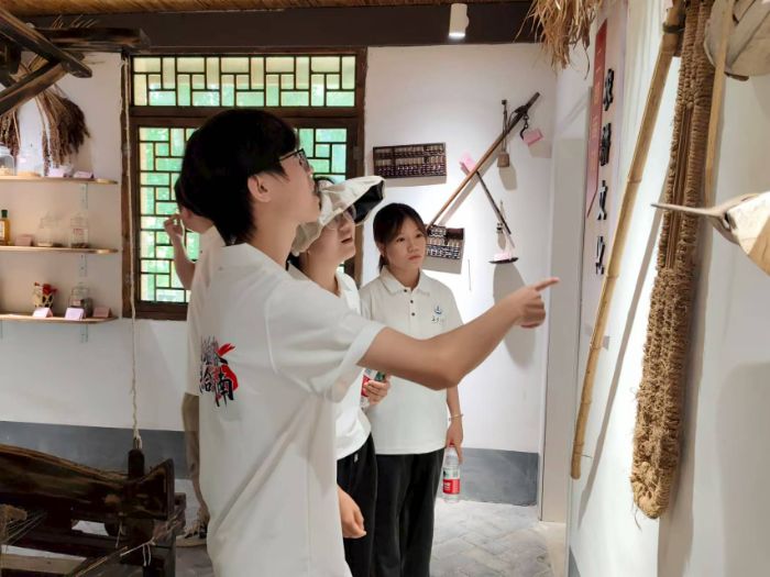 村史館里看變遷,文旅融合煥新顏 在二郎廟村委會(huì)副主任嵇文君的帶領(lǐng)下,實(shí)踐隊(duì)參觀了二郎廟村村史館,斑駁的老農(nóng)具、泛黃的照片與干凈整潔的小平房,生動(dòng)呈現(xiàn)了村莊從“貧困村”到“省級(jí)美麗宜居示范村”的蛻變歷程。隨后,隊(duì)員們走訪了依山傍水的特色民宿集群,二郎廟村通過發(fā)展特色民宿,不僅帶動(dòng)了當(dāng)?shù)芈糜螛I(yè)的發(fā)展,也為村民提供了更多的就業(yè)機(jī)會(huì)和收入來源。
