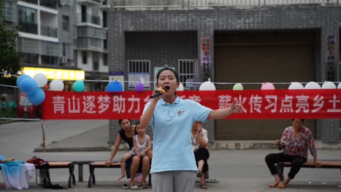 圖為實踐團成員獨唱《英雄贊歌》,黃艷林?jǐn)z