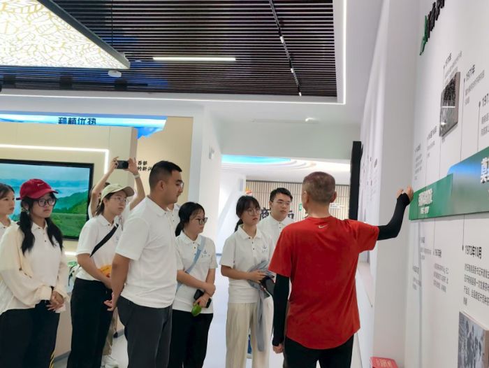 溯悠長(zhǎng)茶史,品文化根脈之深 隨后,實(shí)踐隊(duì)前往商南茶葉博覽館,沉浸式感受雙山茶葉的歷史厚度與文化魅力。館內(nèi)展品豐富多樣,多方位展現(xiàn)雙山茶葉從起源到現(xiàn)代發(fā)展的完整脈絡(luò)。團(tuán)隊(duì)成員重點(diǎn)了解“茶奶奶”張淑珍培育茶葉的奮斗奇跡,她幾十年如一日?qǐng)?jiān)守為民服務(wù)的初心,在北緯33°的商南秦嶺大山里創(chuàng)造了“茶青漫山坡”的景象,讓商南成了年產(chǎn)茶葉6500噸,產(chǎn)值10億元的產(chǎn)茶大縣,使商南山區(qū)的貧困群眾走上致富之路。通過(guò)文物觀賞、多媒體互動(dòng)體驗(yàn),實(shí)踐隊(duì)成員們直觀認(rèn)識(shí)到茶葉在當(dāng)?shù)亟?jīng)濟(jì)社會(huì)發(fā)展中的支柱地位以及在文化傳承中的重要意義。