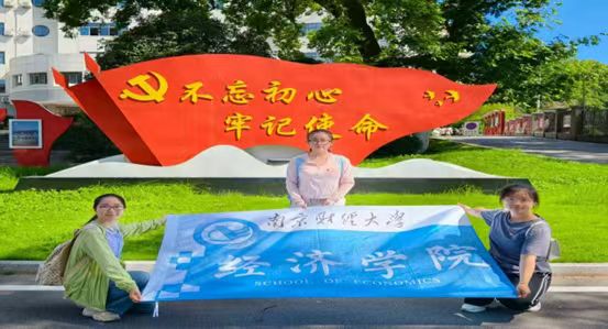 圖為實踐團隊部分隊員在梅山鎮政府前的合照