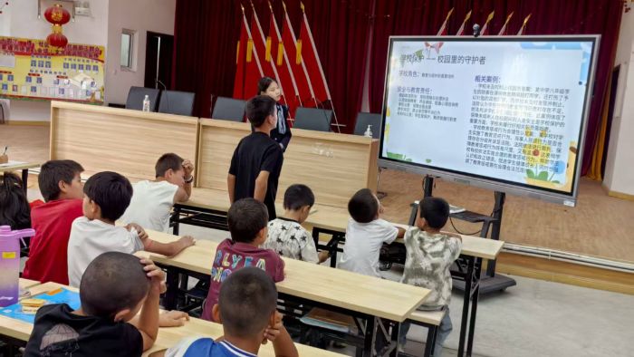 7 月 8 日,新疆政法學院 “理論驅動,國旗飛揚” 愛國主義教育實踐團走進圖木舒克四十四團五連,以多元活動為載體,將紅色基因與愛國精神播撒進孩子們心中。從紅歌傳唱到紅色宣講,從國家象征知識普及到法治教育,一系列精心設計的環節,讓孩子們在沉浸式體驗中厚植家國情懷,汲取成長力量。