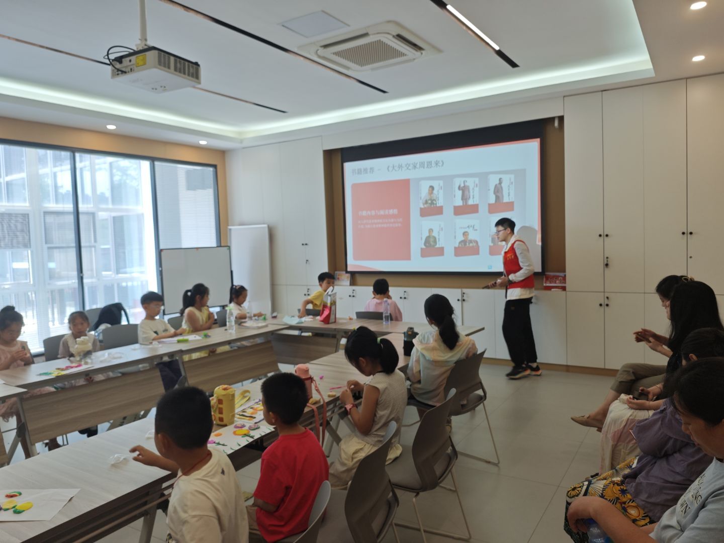 隨后,孩子們在先鋒隊成員的引導下,了解了《周恩來:永遠的榜樣》《周恩來精神新論》等與恩來精神相關的書籍。先鋒隊成員介紹了書籍內(nèi)容,并分享閱讀感悟,激勵孩子們學習總理的卓越風范和偉大人格。