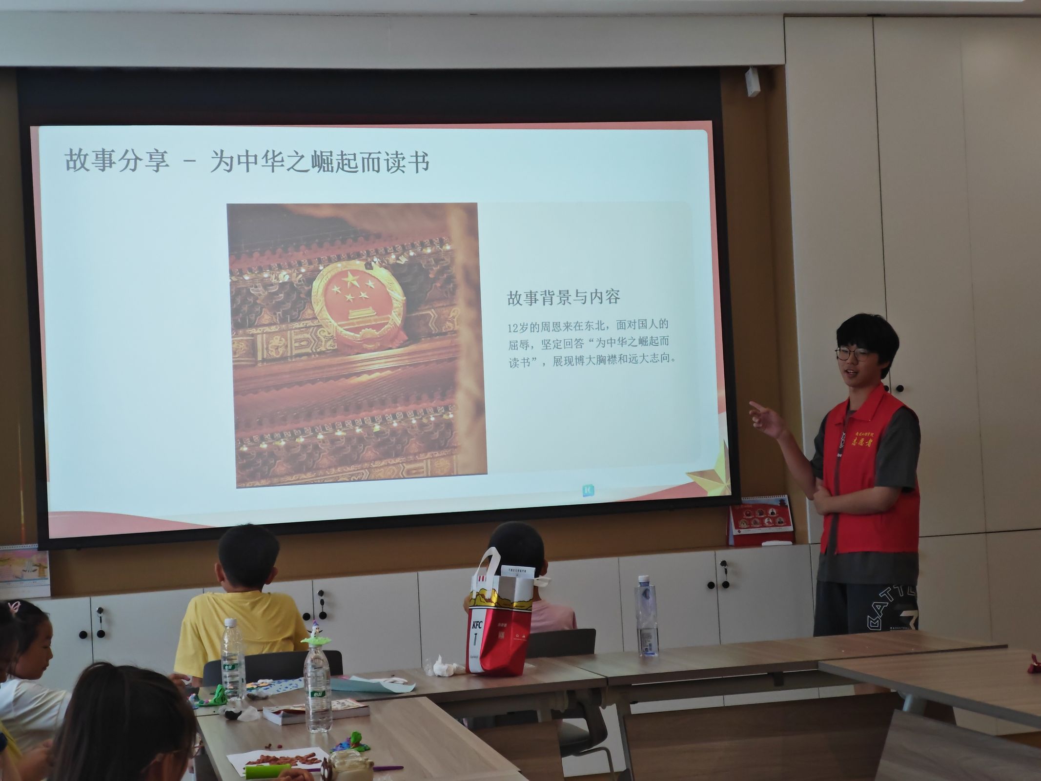 在故事分享環(huán)節(jié),先鋒隊成員講述了周恩來總理“為中華之崛起而讀書”的壯志豪情,以及他在歐洲勤工儉學時確立馬克思主義信仰、工作中始終心系人民的感人事跡,讓孩子們深刻感受到總理的博大胸襟和崇高品格。