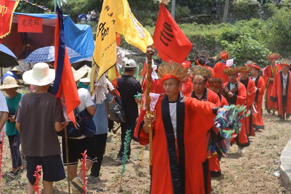 圖為巴代法師隊(duì)列于田地進(jìn)行祭祀活動(dòng)