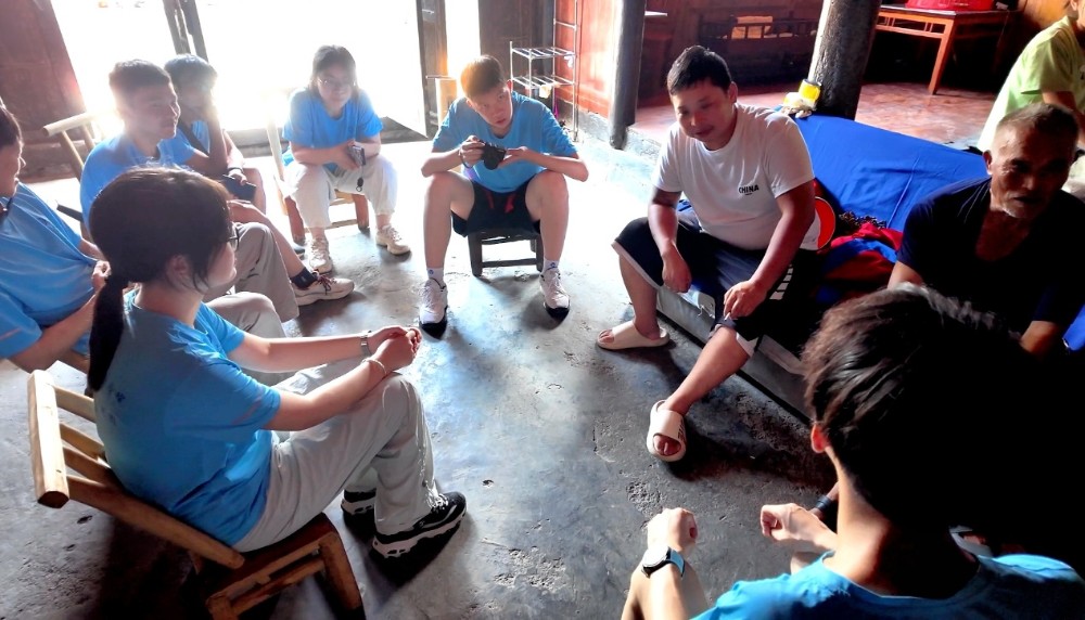 圖為兩位師傅與隊員交談分享 (周沁攝)現代之困與新生希望交織談及巴代文化的傳承困境,龍師傅難掩感慨。隨著現代生活方式的沖擊,許多傳統儀式逐漸簡化甚至消失,年輕人多外出務工,村里老齡化嚴重,能靜下心來學藝的人寥寥無幾。