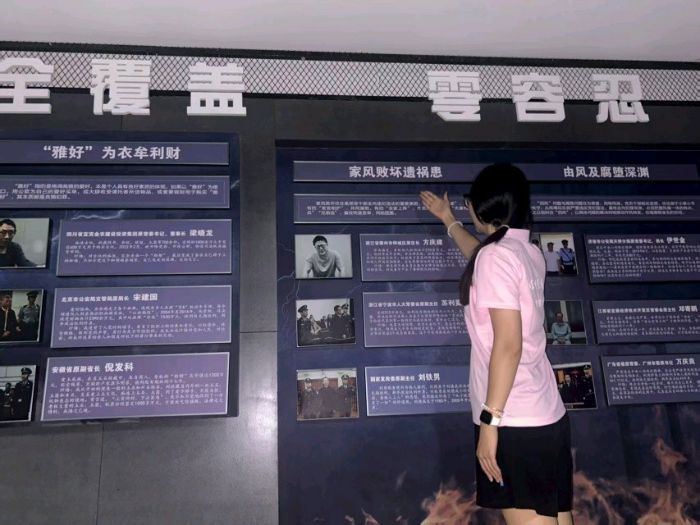 圖為團隊成員在廉潔警示展區學習,了解貪腐案例以明鑒