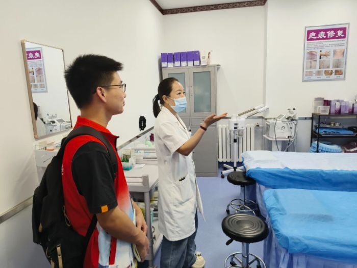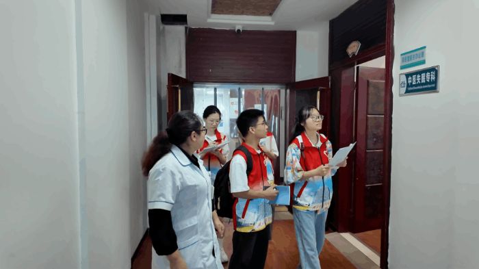 圖為車城街辦鏡譚社區(qū)衛(wèi)生服務(wù)中心的老師帶領(lǐng)實踐隊成員參觀社區(qū)醫(yī)院的基本設(shè)施。熊榮杰供圖