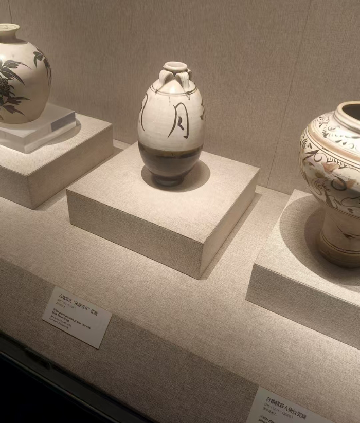 白釉黑花“風月”瓷瓶、各類彩繪瓷罐等文物,成為團隊挖掘“時代精神”的素材。站在白釉黑花“風月”瓷瓶前,講解員用“古今浪漫”串聯:“宋代工匠在瓷瓶寫下‘風月’,把詩意融入日常;今天,我們在文創產品、生活美學中延續這份‘浪漫’,讓傳統文化里的詩意,成為治愈當代心靈的養分,讓古物的浪漫基因,在新時代‘活’起來。”