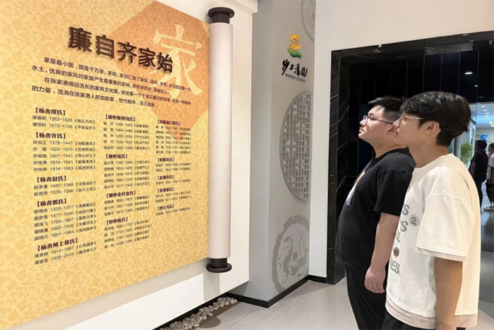 剛踏入紀(jì)念館,一股濃厚的歷史氛圍便撲面而來(lái),瞬間將大家包裹其中。在“廉自齊家始”展區(qū),隊(duì)員們的目光被張家港源遠(yuǎn)流長(zhǎng)的家風(fēng)文化牢牢吸引。“優(yōu)良的家風(fēng)就如同肥沃的土壤,滋養(yǎng)著一代又一代的人,也為社會(huì)的發(fā)展提供了強(qiáng)大的精神力量。”王申巧看著展板上一個(gè)個(gè)家族的故事,深有感觸地說(shuō)道。我在一旁聽(tīng)著,也不禁思考,家風(fēng)建設(shè)與革命傳統(tǒng)傳承其實(shí)是相輔相成的,它們都是培育良好社會(huì)風(fēng)尚的重要組成部分。先輩們不僅在戰(zhàn)場(chǎng)上為了國(guó)家和人民奮勇殺敵,也在家庭這個(gè)小單元中,默默傳遞著正直、擔(dān)當(dāng)?shù)日芰浚@些都值得我們?nèi)W(xué)習(xí)和弘揚(yáng)。