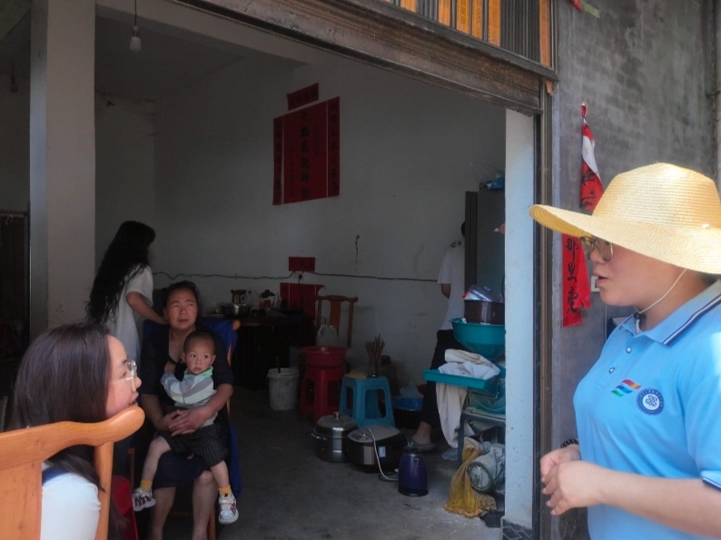 到達安山村后,實踐隊迅速展開工作。隊員們深入農戶家中,耐心地向村民科普普通話的重要性:“普通話是全國通用的交流工具,學會普通話,外出務工時與工友溝通會更順暢,通過電商平臺銷售村里的特色物產也能更加便捷。”隊員們還結合當下數字化學習趨勢,介紹了線上學習普通話的方式,如他們在抖音上的普通話知識直播,以及將發音技巧、日常用語制作成的趣味視頻,村民們可以利用空閑時間刷手機學習。