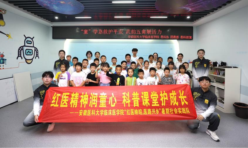 為響應時代號召,安徽醫科大學臨床醫學院“紅醫映皖,醫路興鄉”實踐團隊,在6月28日至29日走進六安市霍山縣科技館,以“醫學科普+文化傳承”雙輪驅動,為鄉村和社區兒童打造“急救防護課堂”“人體科學實驗室”“非遺武術工坊”三大沉浸式體驗場景,讓科學與傳統在情景體驗中綻放光芒。