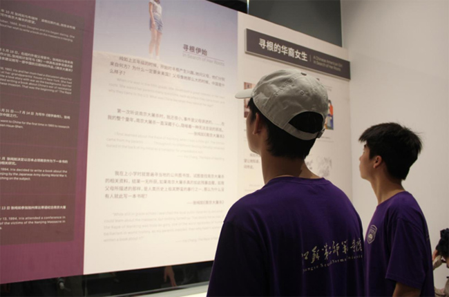 圖為實踐隊隊員參觀張純?nèi)缗可绞论E展。汪雨桐 攝