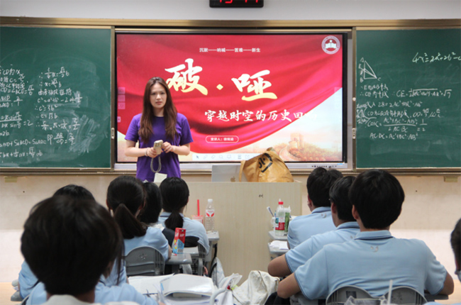 圖為實踐隊隊員為高中生開展愛國主義教育思政課。汪雨桐 攝