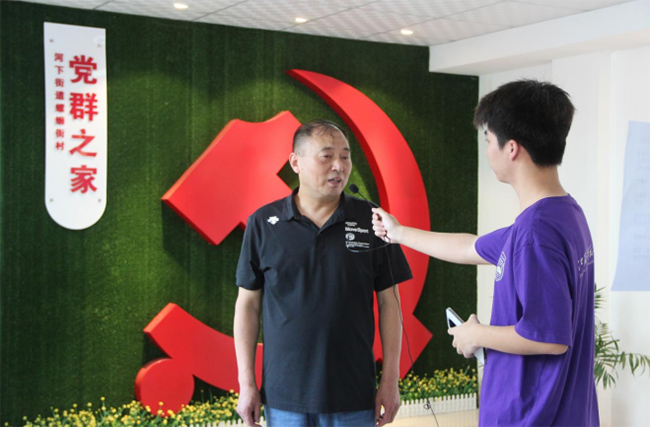 圖為實踐隊隊員采訪螺螄街村黨總支書記。汪雨桐 攝