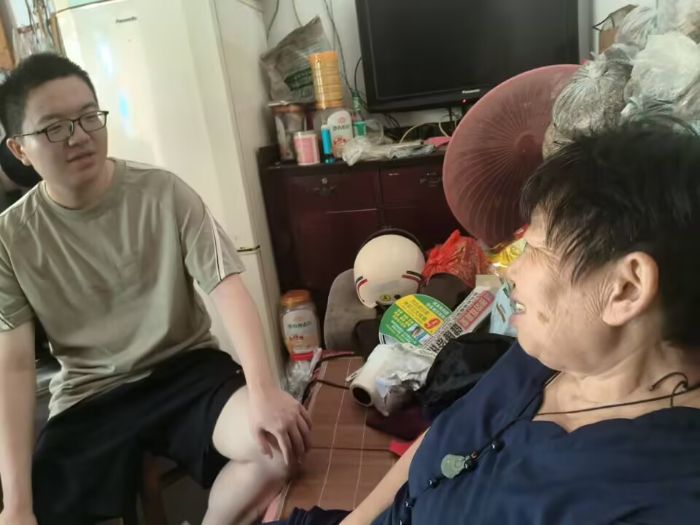 活動(dòng)當(dāng)日,隊(duì)員們分組逐戶拜訪社區(qū)內(nèi)老人,為他們送上精心準(zhǔn)備的毛巾、肥皂等實(shí)用物品外,代幾位視力不佳的老人于醫(yī)院配置了免費(fèi)的老花鏡,為喜愛(ài)聽(tīng)?wèi)虻耐鯛敔斔腿ケ銛y收音機(jī)。當(dāng)學(xué)生們將慰問(wèn)品遞到老人手中時(shí),老人布滿皺紋的手緊緊握住那份來(lái)自遠(yuǎn)方的關(guān)心,眼中流露出驚喜與感動(dòng)。“娃娃們,你們這么遠(yuǎn)來(lái),還記掛我們,真是……真是太好了!”慰問(wèn)品傳遞的僅僅是物質(zhì)關(guān)懷,而更深的溫暖則流淌在促膝長(zhǎng)談間。隊(duì)員們圍坐在老人身旁,耐心傾聽(tīng)他們講述過(guò)往歲月的艱辛與榮耀、農(nóng)事勞作的苦樂(lè)、對(duì)遠(yuǎn)方親人的思念。一位老奶奶講述年輕時(shí)支援建設(shè)的經(jīng)歷,說(shuō)到動(dòng)情處,學(xué)生們握住了她枯瘦卻曾撐起一片天地的手;幾位隊(duì)員教老人使用手機(jī)與子女視頻通話,當(dāng)屏幕那端浮現(xiàn)熟悉臉龐,老人眼中閃爍的淚光與笑意,便是青春反哺最生動(dòng)的詮釋。交流中,同學(xué)們也分享了大學(xué)里的新鮮事,并傾聽(tīng)了老人年輕時(shí)的故事,通過(guò)這種相互訴訟相互傾聽(tīng)的方式,驅(qū)散了老人們平日的些許孤寂。