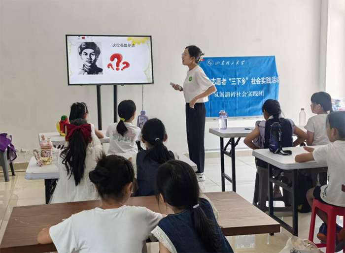 紅課潤童心薪火永相傳 在“三下鄉”社會實踐活動中,實踐隊隊員們精心籌備的紅色主題課程陸續開講,以生動故事、深刻歷史與硬核知識為孩子們搭建起一座通往紅色精神殿堂的橋梁,讓紅色基因在課堂里生根發芽。