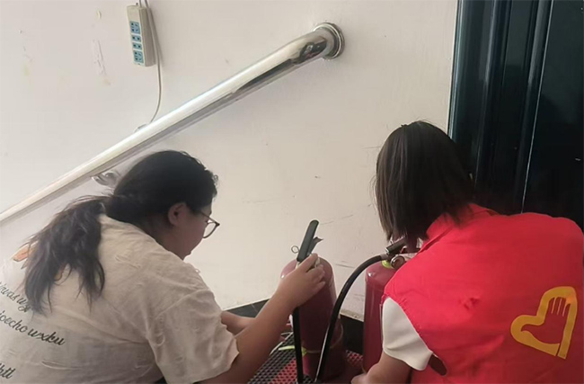 安全無小事,責任人人有。消防問題也很關鍵。我們跟隨社區的工作人員,逐棟樓、逐店鋪進行檢查。在居民樓道里,他們仔細查看滅火器是否按規定擺放、是否在有效期內,對部分被雜物遮擋的滅火器,及時提醒居民和物業清理周邊空間;在社區內的沿街小超市、餐飲店等店鋪,重點檢查滅火器類型是否符合場所需求——比如餐飲店鋪是否配備了撲滅油類火災的干粉滅火器,同時向店主詢問日常維護情況,講解滅火器正確使用方法。并將排查的結果情況記錄下來,將記錄下來的內容交給社區相應的管理人員。