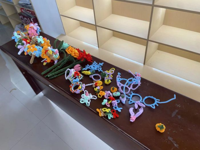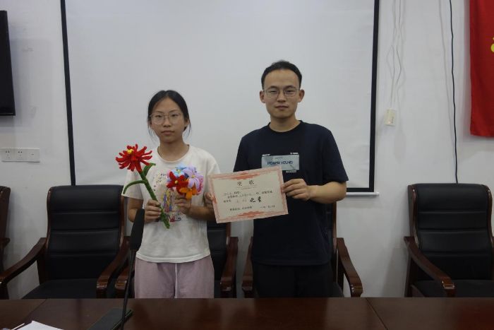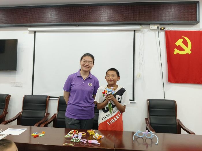 抽獎環節瞬間點燃全場熱情。從方案構思到落地執行,支教團隊全程自主操辦,力求給孩子們獨特驚喜。獎品更是別出心裁——一方面,老師們跟著網上教程,用扭扭棒親手擰出造型各異的創意小物件,藏著“敢想敢做”的期許;另一方面,備好甜蜜糖果,傳遞純粹的快樂。設置特等獎、一至三等獎,同學們有序上臺,拿到扭扭棒作品或糖果時,眼中的驚喜與笑意,讓這些飽含心意的獎品,成為夏日最動人的禮物。