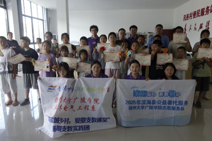 為延續支教溫情火種、筑牢知識傳遞根基,7月20日,揚州大學廣陵學院土木電氣工程系“情系鹽城鄉村,愛撒支教課堂”暑期社會實踐團隊,攜手指導老師霍藝、五汛鎮團委書記陳哲,前往江蘇省鹽城市濱海縣五汛鎮,借下午最后一節課的珍貴時光,開啟結營儀式,為這段師生雙向奔赴、共同成長的育人旅程,鄭重畫上滿是溫度的句點。