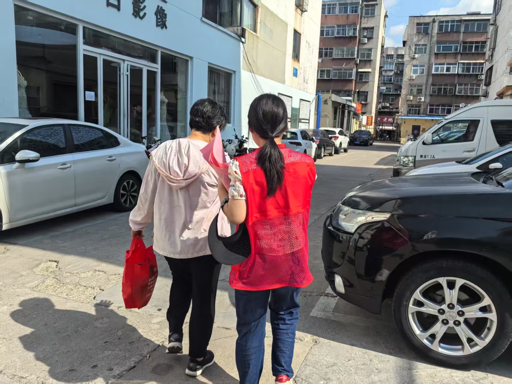圖為實踐團成員摻扶老人離開
