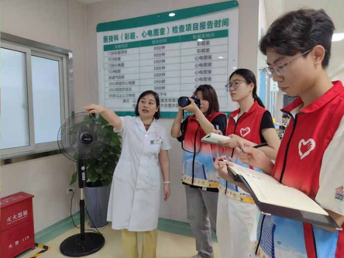 圖為茅箭區(qū)人民醫(yī)院相關(guān)醫(yī)護(hù)人員為隊員們講解就醫(yī)免費(fèi)公交。普依玲 供圖