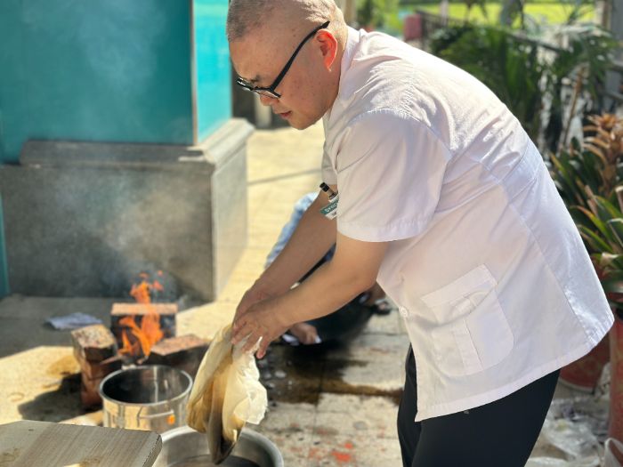 圖為社區(qū)醫(yī)院醫(yī)生對隊員們講解中醫(yī)診療。羅思源 供圖