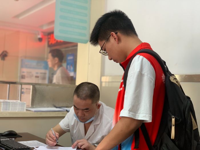 圖為社區(qū)醫(yī)院醫(yī)生在填寫隊員們準(zhǔn)備的問卷。羅思源 供圖