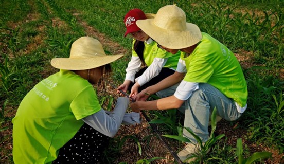 圖為團(tuán)隊(duì)成員參與滴灌管的維護(hù)。 邢嘉琪 供圖