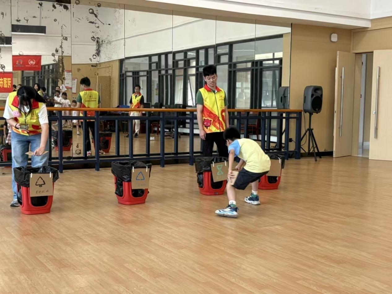 圖為孩子們分隊垃圾分類接力賽 王宇婕攝