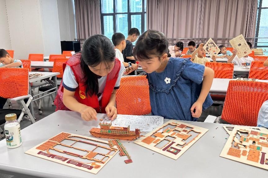 拼裝紅船模型活動中,團隊成員耐心指導孩子們完成模型組裝。這一過程不僅鍛煉了孩子們的動手能力與空間思維,更讓他們在實踐中了解了紅船背后的歷史故事,厚植愛國情懷。