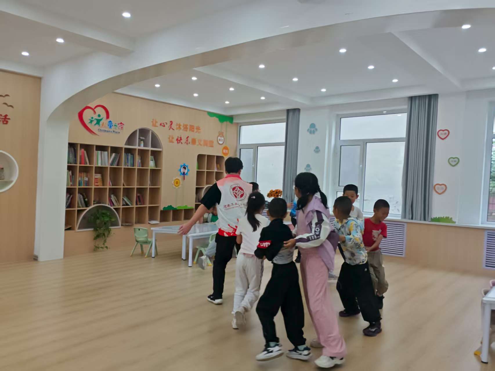 在課堂講解之后,志愿者們還陪伴孩子們一起玩起了老鷹捉小雞的小游戲。在游戲過程中,孩子們歡聲笑語不斷,志愿者們也仿佛回到了童年時光。通過這個簡單而經(jīng)典的游戲,不僅增進了志愿者與孩子們之間的感情,也讓孩子們在玩樂中感受到了集體的力量和團結(jié)的重要性,而這正是愛國主義精神中不可或缺的一部分。
