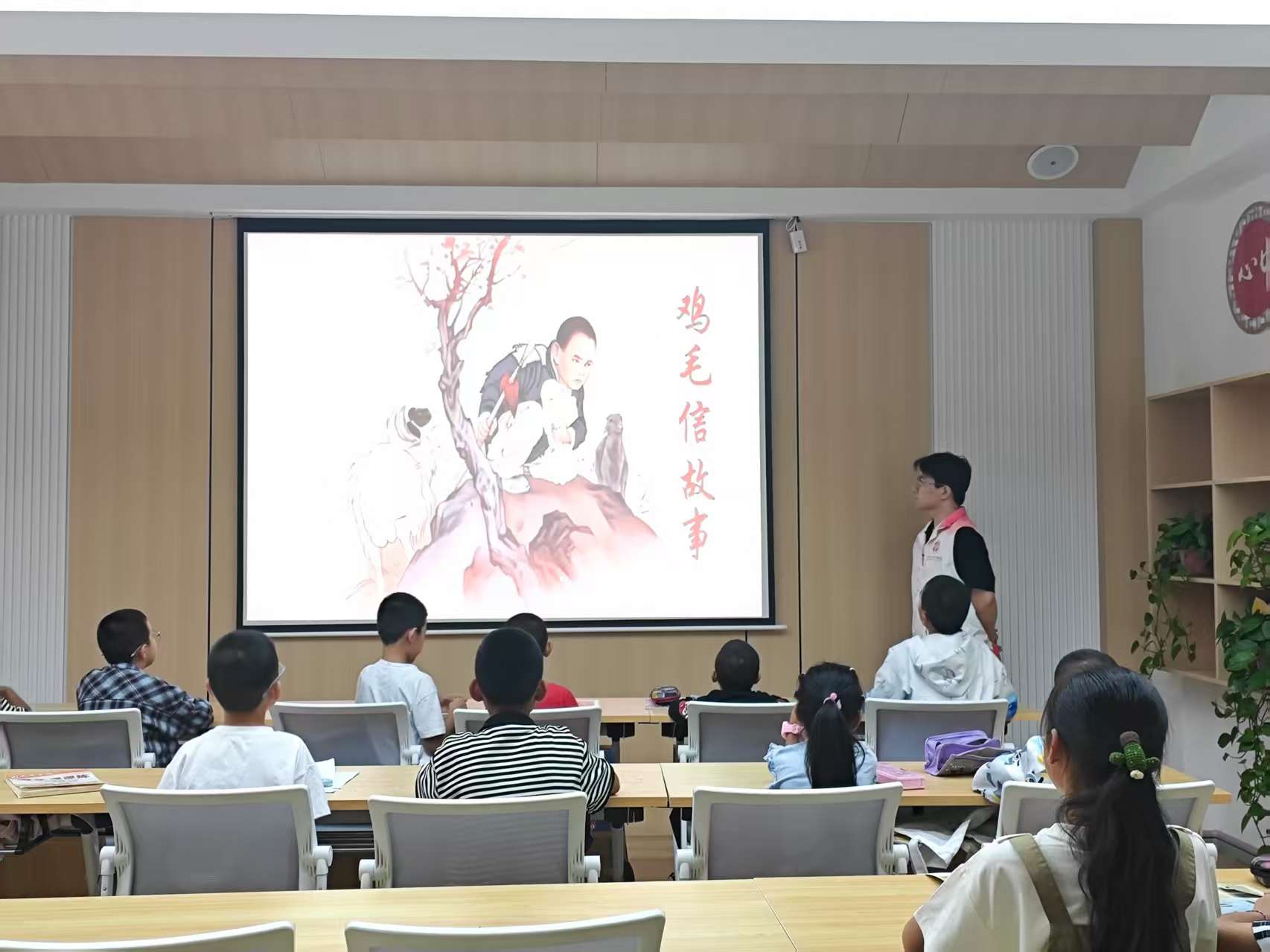 活動當(dāng)天,志愿者們早早來到社區(qū)的“四點半課堂”,精心布置場地,準(zhǔn)備教學(xué)用具。授課環(huán)節(jié),志愿者通過圖文并茂的PPT,生動形象地講述了《雞毛信》等經(jīng)典愛國故事,小英雄海娃為了送雞毛信,面對敵人的重重阻撓,機智勇敢、毫不退縮的精神,深深吸引了在場的每一位小學(xué)生。隨后,志愿者又播放了《歌唱祖國》的視頻,激昂的旋律、動人的歌詞,瞬間點燃了孩子們的愛國熱情。在志愿者的帶領(lǐng)下,孩子們齊聲高唱,用稚嫩而堅定的歌聲抒發(fā)對祖國的熱愛。