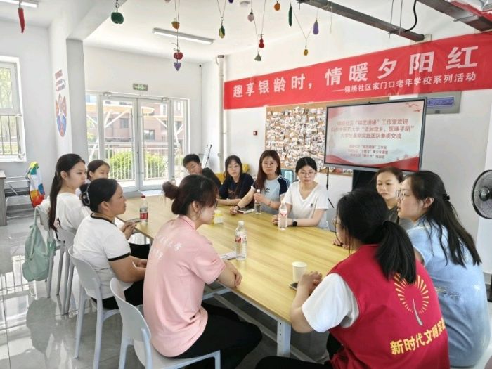 圖為志愿服務隊成員與錦繡社區工作人員圍坐交流