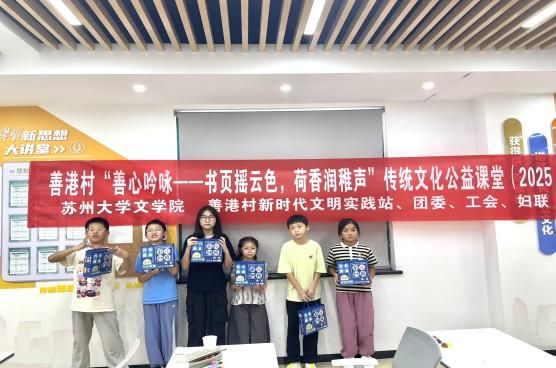 為推動優秀傳統文化的創造性轉化、創新性發展,2025年7月7日至7月11日,蘇州大學文學院傳統文化公益課堂“書頁搖云色,荷香潤稚聲”實踐團隊于江蘇省張家港市善港村開展了豐富生動的線下實踐活動。