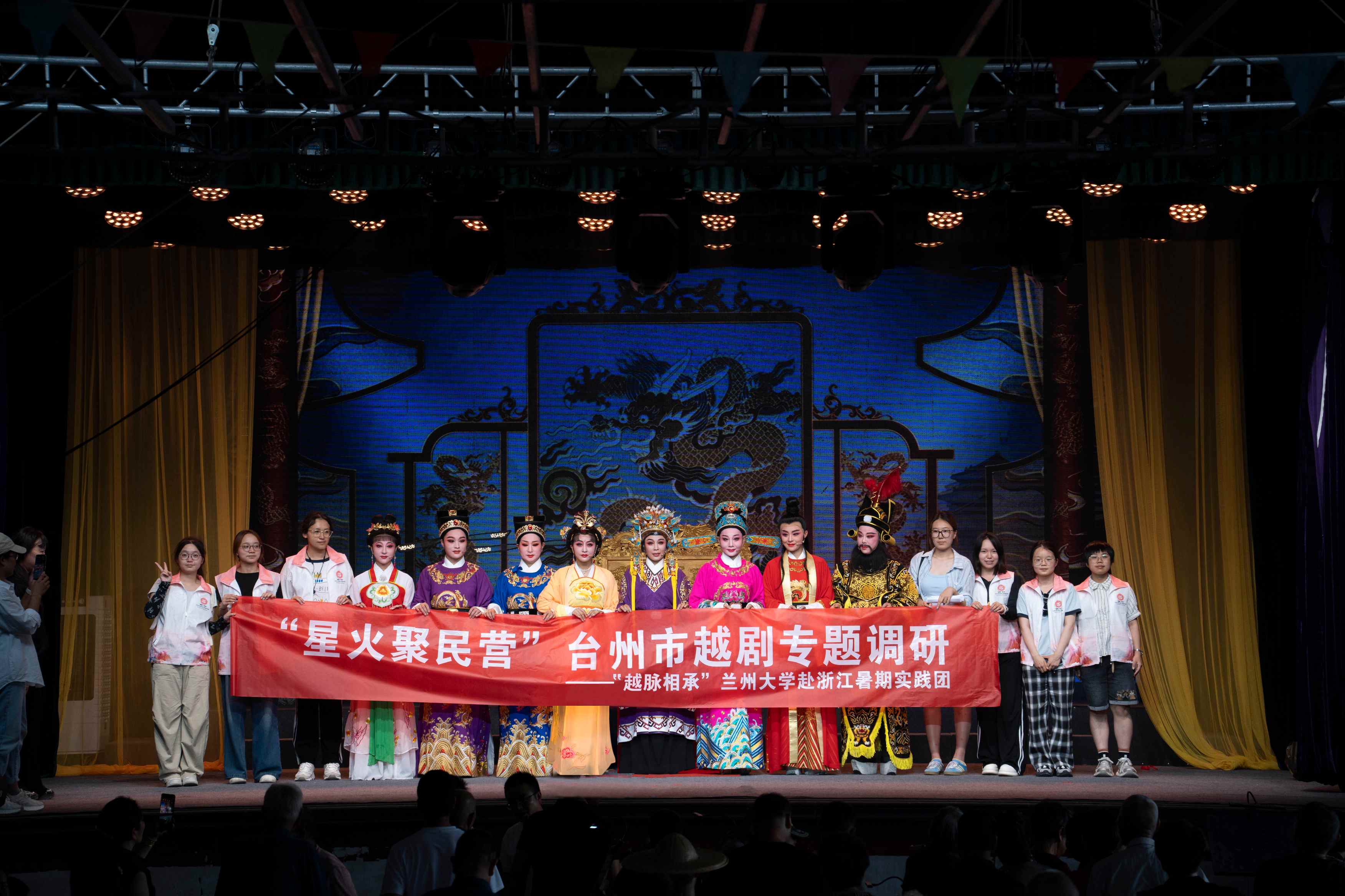 圖為團(tuán)隊(duì)成員與臺(tái)州市阿小越劇團(tuán)合影。王夢(mèng)嫻 供圖