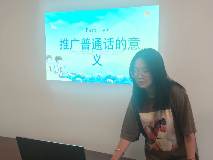 隊員們返回家鄉各展所長,并結合當地實際需求,開展了一系列內容豐富、形式多樣的實踐活動。大家在呂梁市離石區黨建主題公園、呂梁市積翠公園向老人與孩子們進行普通話推廣教學,并用普通話講解紅色故事,傳承紅色精神。隊員們還在離石區馬家村等村莊針對性地幫助村民學習常用于推銷售賣農產品的普通話,不僅幫助村民有效提升了溝通表達的能力和實用致富的技能,更為當地產業興旺注入了動力,也為文化建設與基層治理增添了新活力。在廣西壯族自治區柳州博物館開展的面向周邊市民的推普活動中,館藏的壯族銅鼓、侗族鼓樓模型等文物成為連接方言文化與通用語言的紐帶,讓市民們理解推普與文化傳承并不矛盾。隊員們在山西省晉中市和順縣和順一中采用多媒體輔助教學手段,通過視頻、音頻、圖片等多種形式,直觀展現普通話的重要性和實用性,讓同學們更易理解,同時設置互動環節,邀請同學們分享在生活中因語言差異遇到的趣事或困擾。同學們深刻體會到推廣國家通用語言文字、筑牢文化認同根基的重要性。