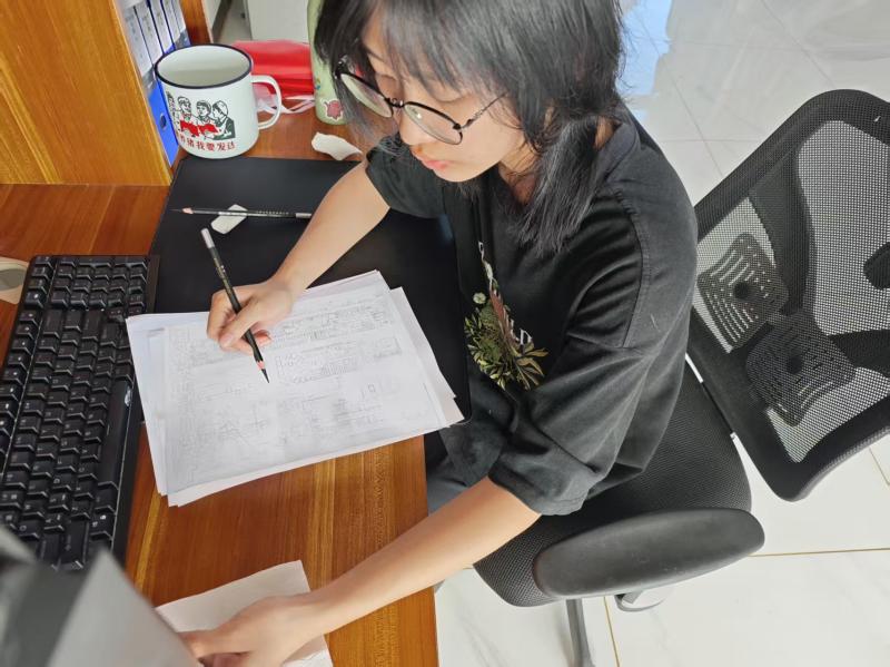 此外,實踐團成員用繪制、修改景觀施工圖紙,完善尺寸標注、植物配置,輔助方案優(yōu)化,助力打造符合居民生活實體景觀。
